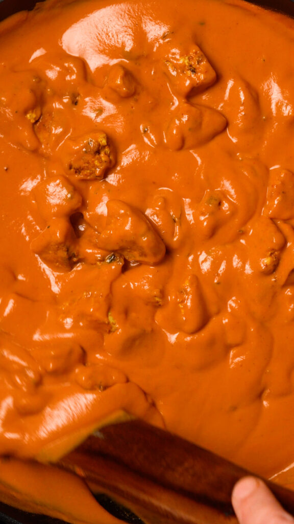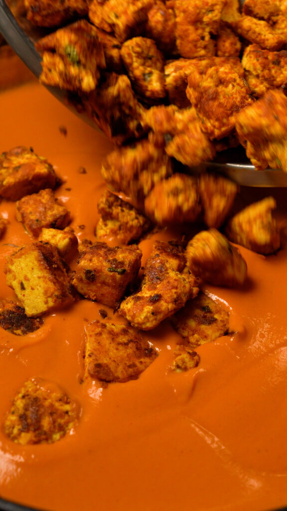 - The Gravy – We will be using some Vegan Butter, Onions, Garlic, Indian Spices, Tomato Sauce, Cashews and Vegan Milk for the thick and delicious gravy!