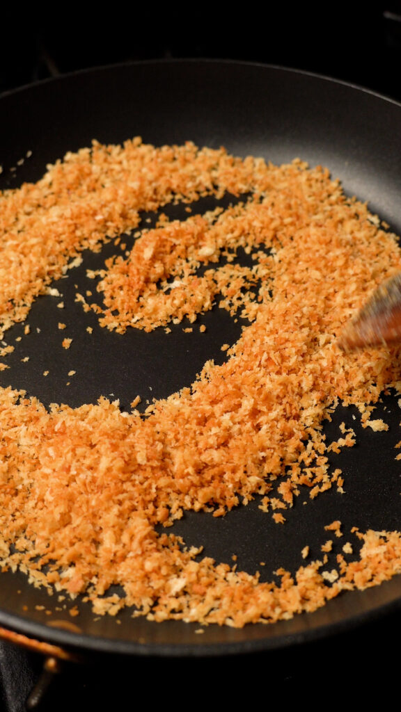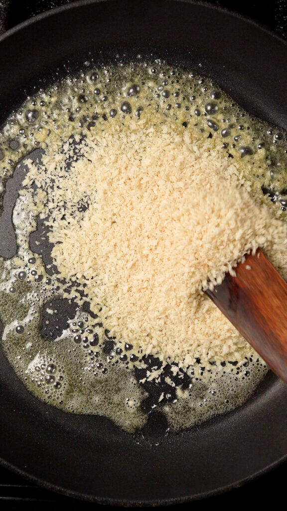 Everything is pretty much the same for the air fryer. For the Panko, I suggest toasting it in a pan with some melted vegan butter to get them nice and golden brown. I find that they can often come out of the air fryer a bit pale.