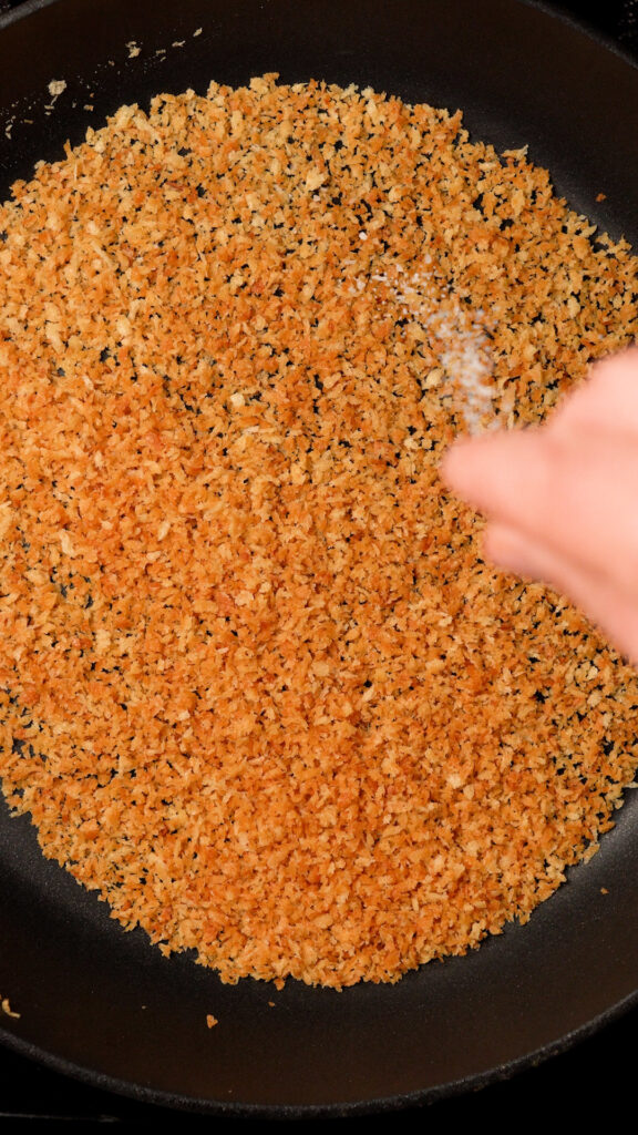 - For the panko breadcrumbs, I recommend only adding about 1/2 cup at a time. This will ensure that you don’t use too much and will also reduce the amount that clump up from any of the wet mixture.