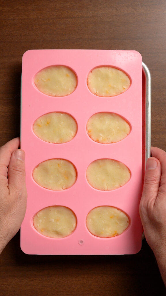 Scoop about 2 Tbsp (35g) of the mixture and shape into an egg like shape. Or use an egg mold if you have one. Add them to a baking sheet and freeze for about 1 hour or until firm enough to handle without altering their shape.