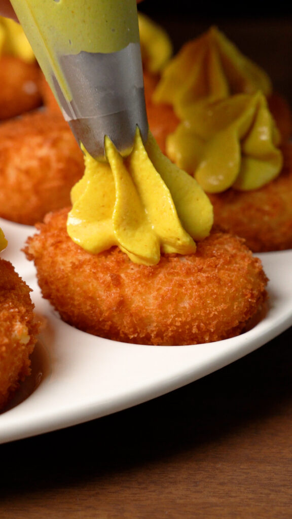 I’ve made Vegan Deviled Eggs a few years ago, and I saw somebody do a version where they deep fried them. Since the Vegan Egg Whites would melt if I deep fried them, I thought that the next logical step would be to fry potatoes instead. Then of course I thought I should make croquettes and here we are!