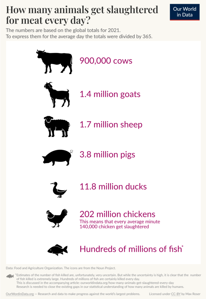 But nobody lives like that. And it’s also not sustainable at the current rate of consumption. That’s why the vast majority of slaughtered animals comes from Factory Farms.
