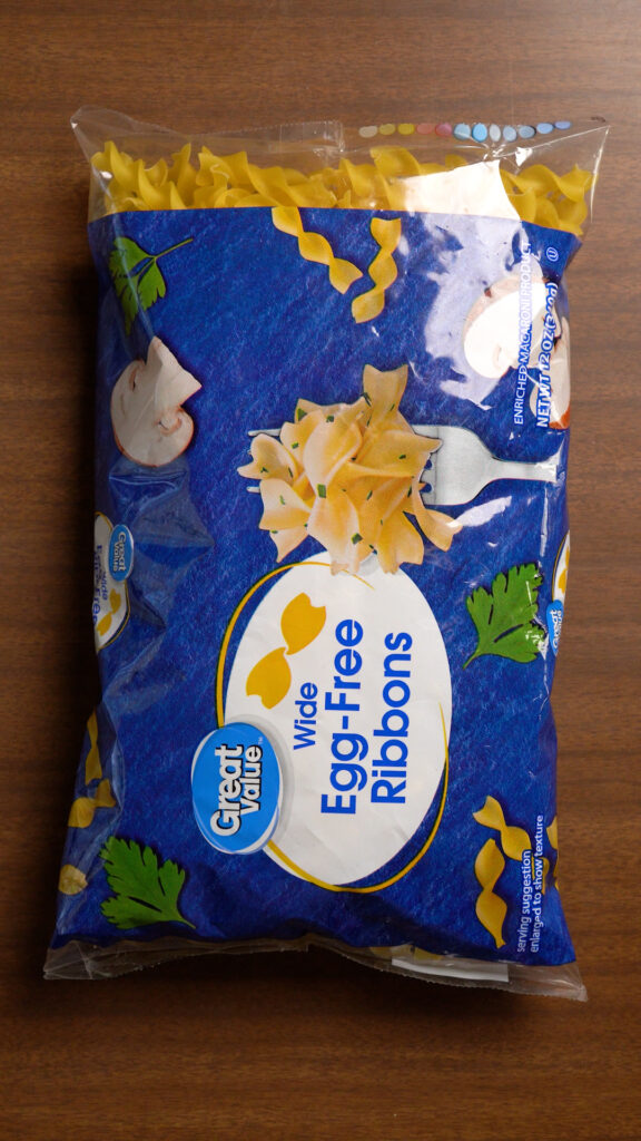 The only vegan egg noodles I’ve been able to find are the Walmart brand ones. But you can also use pasta too. Fettuccine, Pappardelle, Fusilli, and similar type of pasta should work well!