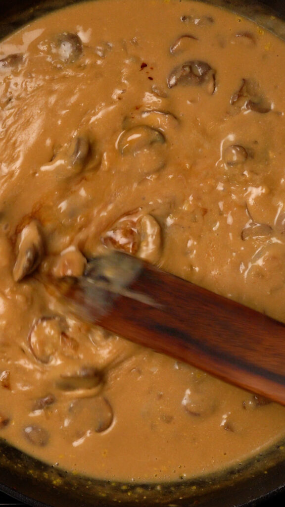 The sauce or gravy is a rich, thick and slightly tangy affair. This is thanks to the dijon mustard and vegan sour cream that we’ll be using. You can also use some unsweetened vegan yogurt instead of sour cream. The tangier and sour the better.