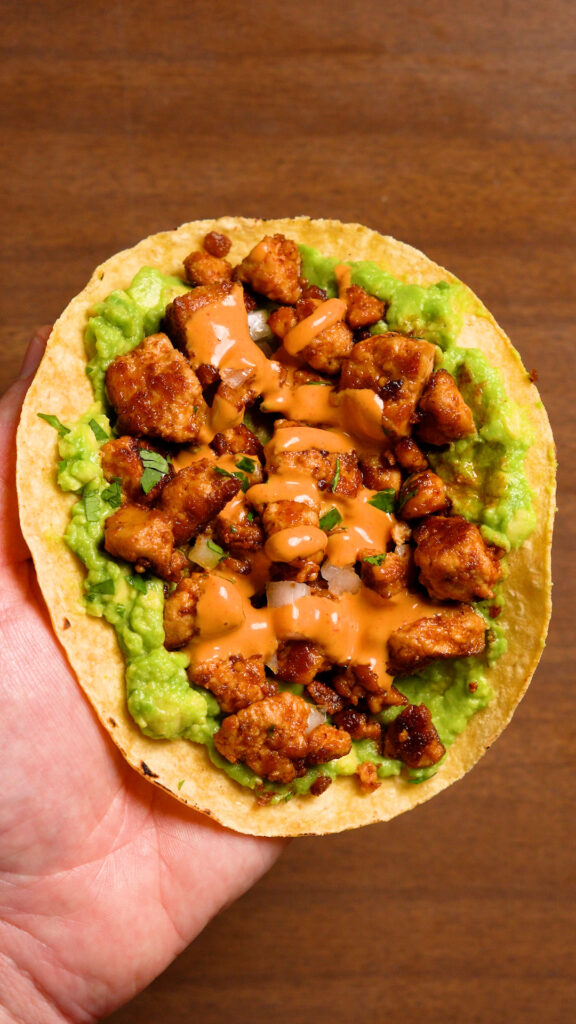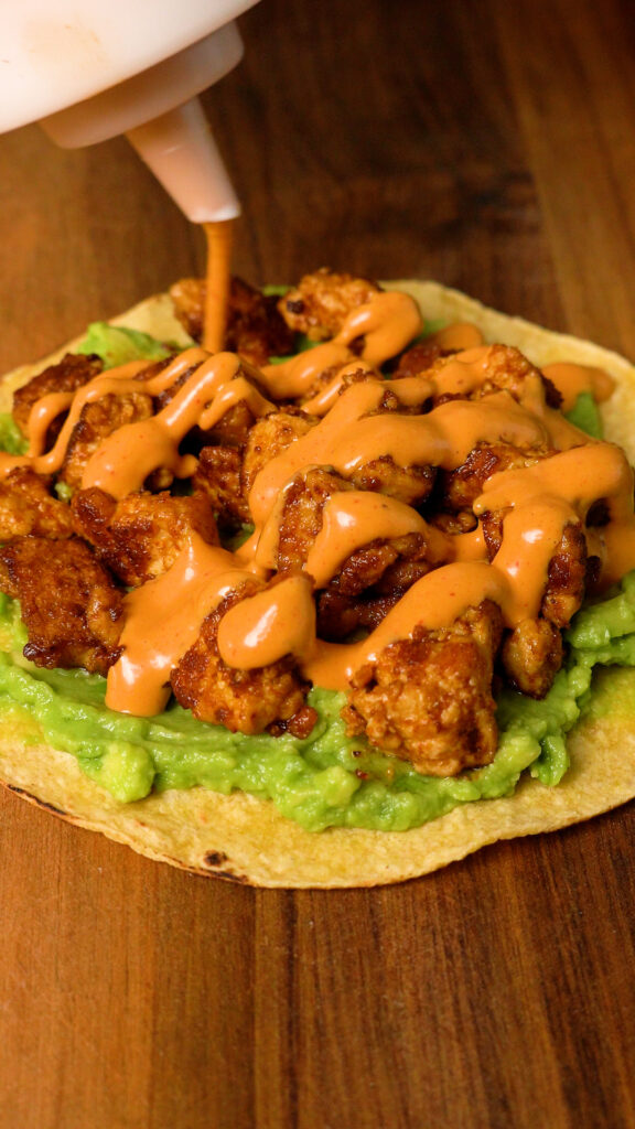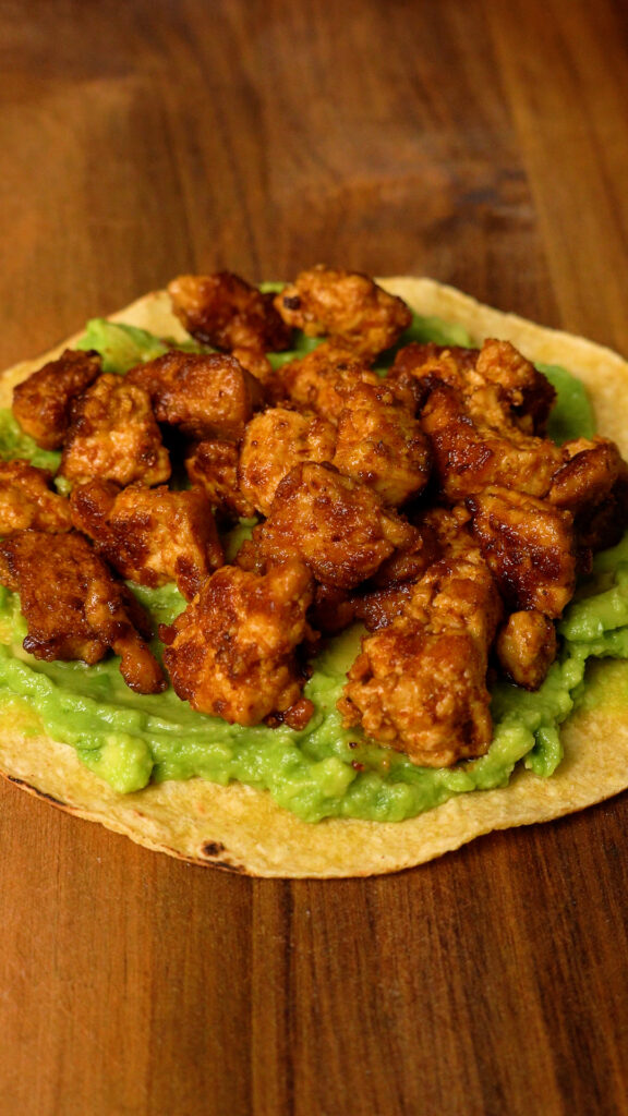 - Mash up some avocado, add some salt and lime juice to taste. Spread that on a tortilla, then top with the tofu, and whatever toppings you like and enjoy!